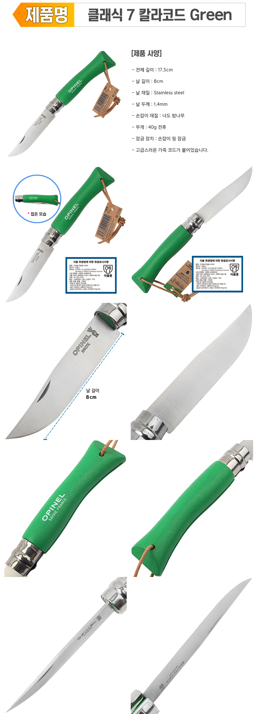 HOME > 오피넬 나이프 OPINEL > 접이식 나이프 > 오피넬 클래식 7 칼라코드 그린